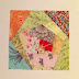 На одном из светлых шестиугольников вышиваю незатейливые цветочки атласными лентами, подобрав цвет лент под ткань.
